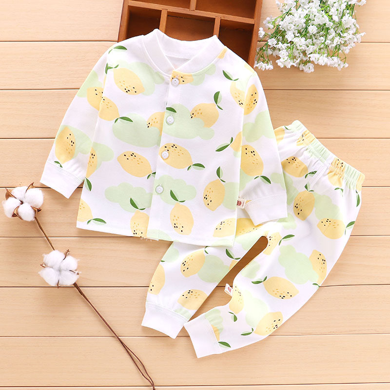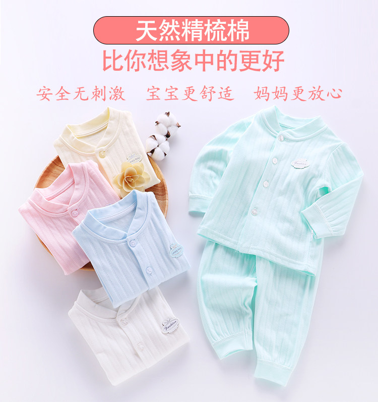 Baby cotton cardigan autumn clothes and long johns children's stand-up collar pajamas top boys and girls underwear set autumn and winter - Taobao