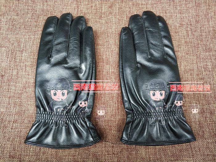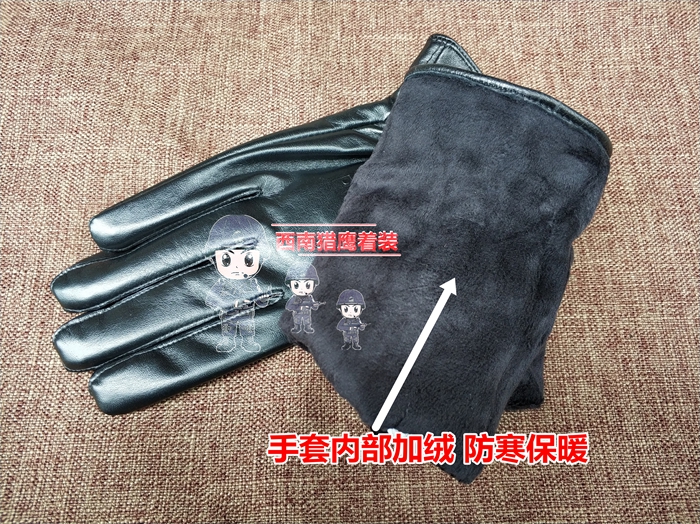 Security gloves Winter cold gloves black full finger plus cashmere sheepskin gloves security leather gloves warm gloves