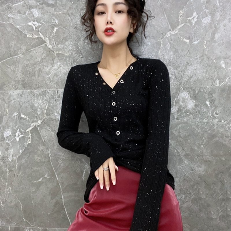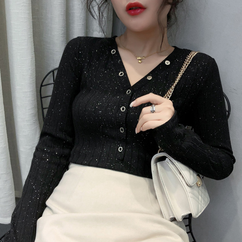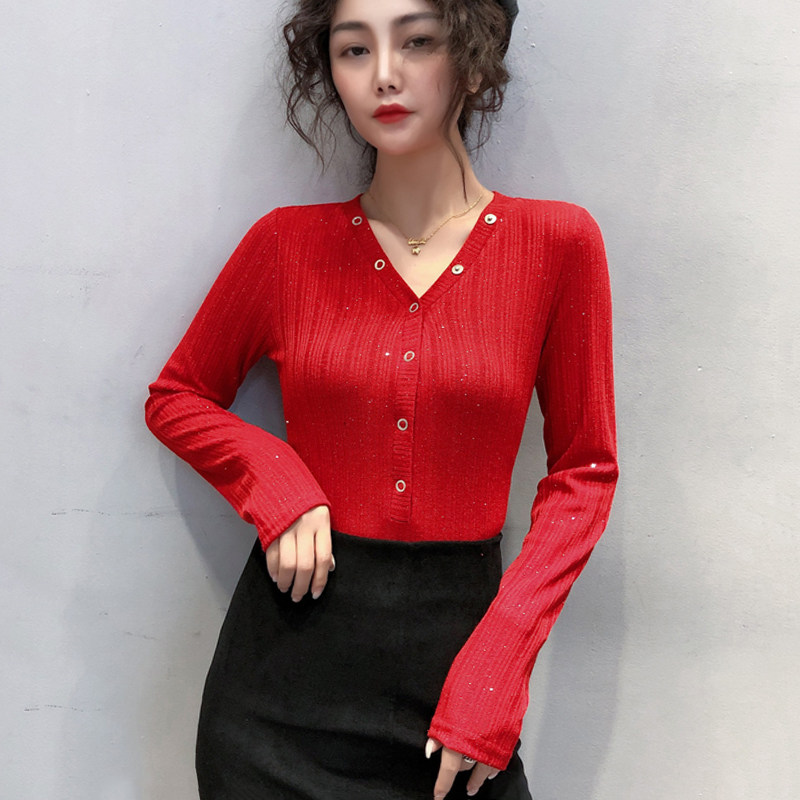 Play undershirt woman Nehitch winter Eurostock New body Slim Long Sleeve T-Shirt Woman Fashion Foreign Pie Cardiopite V-neck blouse