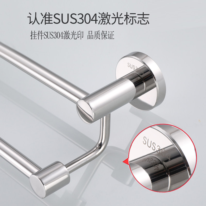 304 stainless steel towel rack double bathroom toilet hanging rod thicker and thicker - free punch plate