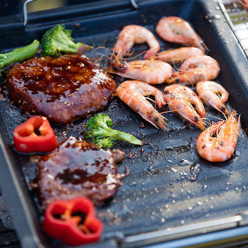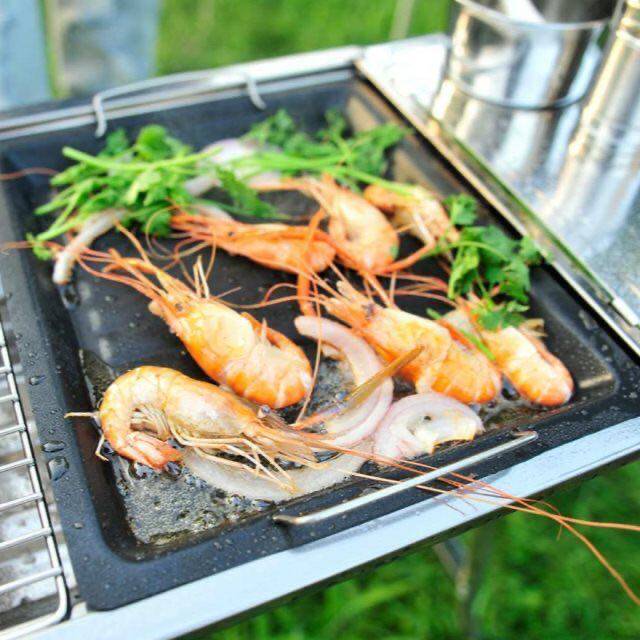 Outdoor non-stick frying and grilling dual-purpose plate 30*25cm stainless steel grill exclusive tool accessories Korean barbecue plate