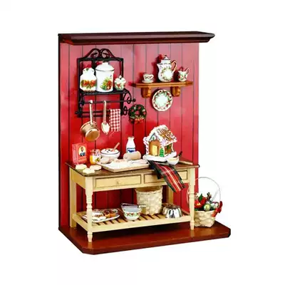 {German brand}Baby house miniature mini kitchen field Christmas atmosphere scene display cabinet 12 points Christmas gift