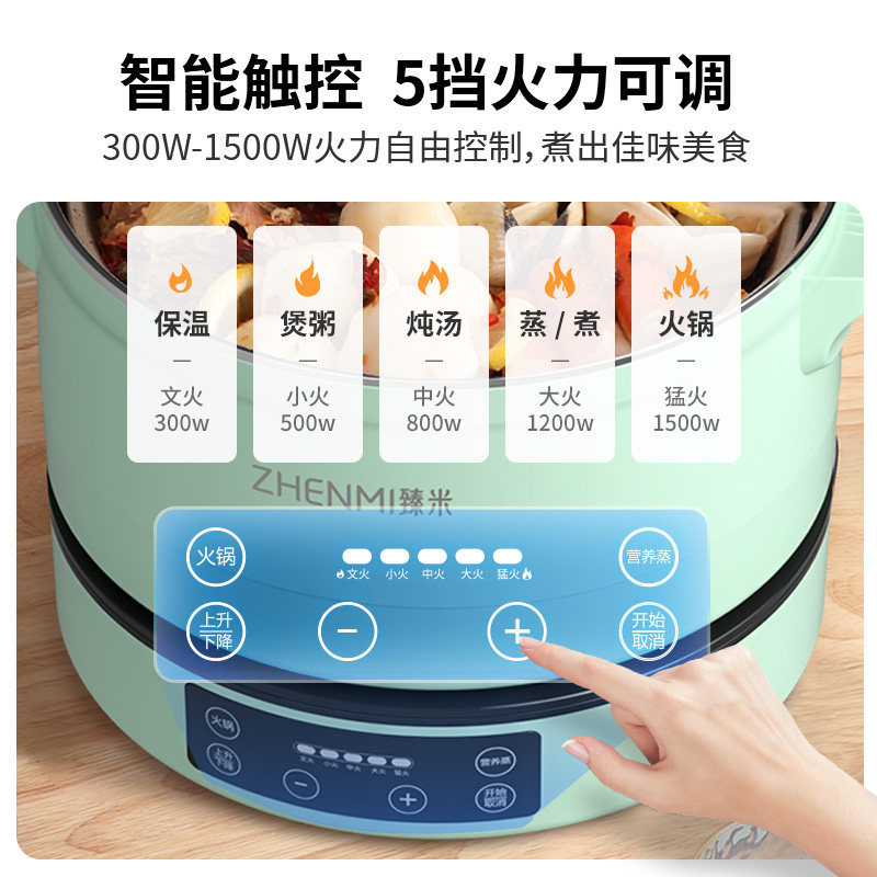 Zhenmi intelligent automatic lift electric hot pot pot household multi-function all-in-one pot electric pot quick-cooking pot plug-in