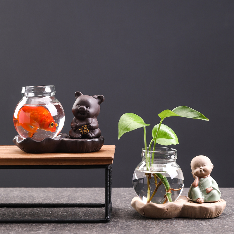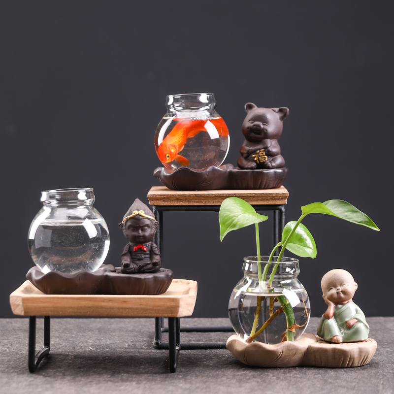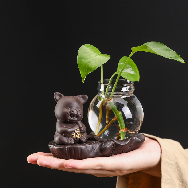 Lotus Terrace Glass Vase (Don't Look at the Little Monk) Lotus Terrace Glass Vase (Don't Listen to the Little Monk) Lotus Terrace Glass Vase (Congratulations to the Pig) Lotus Terrace Glass Vase (Luxiang Pig) Four No Stoneware-No Move Four No