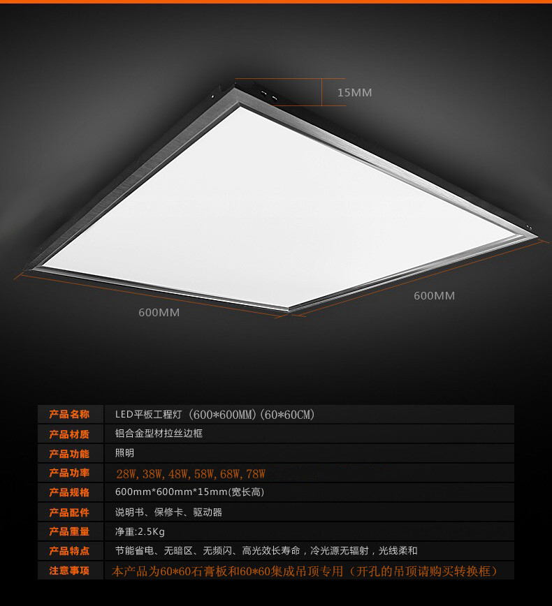 Integrated ceiling 600x600LED flat lamp 60x60LED panel light mineral wool board quality engineering light