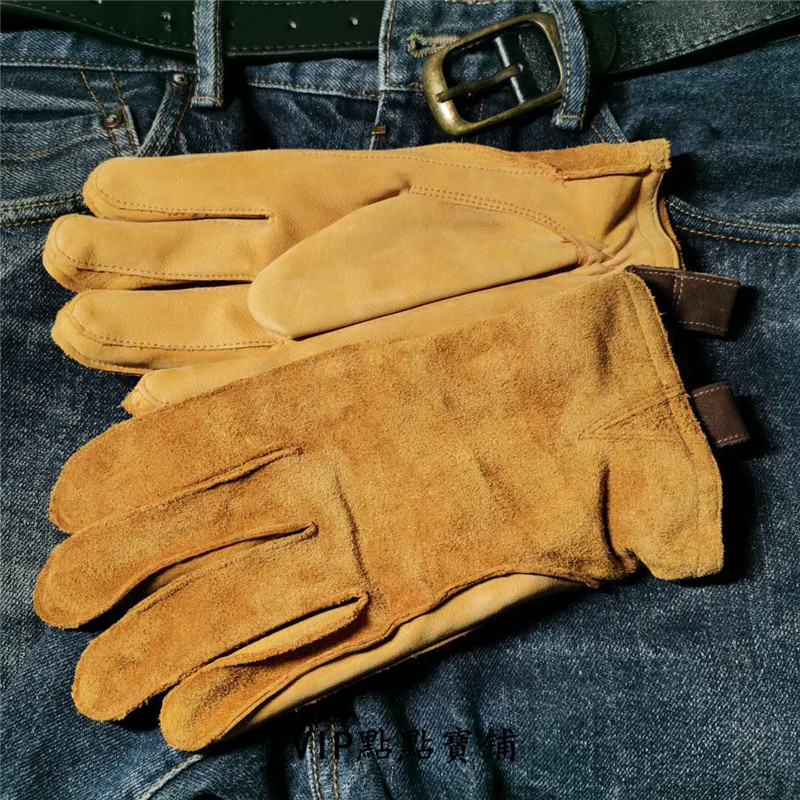 Spot imported cowhide autumn and winter thin velvet Harley wind men and women knight tooling riding retro bear claw gloves