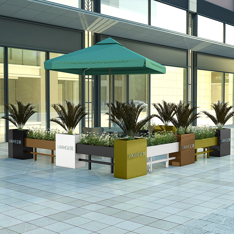 Real estate outdoor combination flower box milk tea shop sample house display center outside fence green planting municipal hotel flower bed flower trough