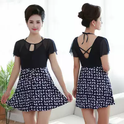 Middle-aged and elderly swimwear women's moms one-piece loose conservative big size hot spring clothing fat mm slim swimsuit