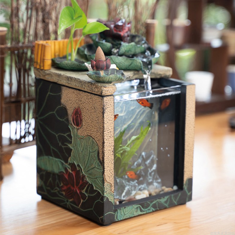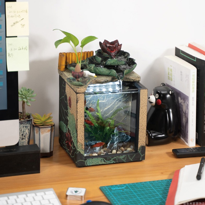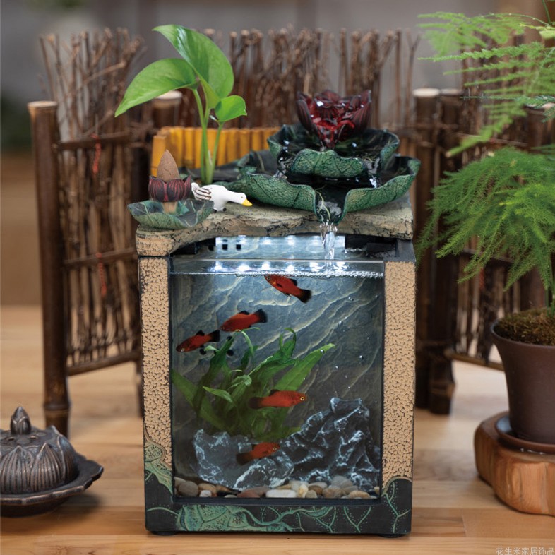 Micro Landscape Fish Tank Decoration Building View Package New Chinese Living Room Small Office Swing Piece Creativity With Flowing Water Soft Dress