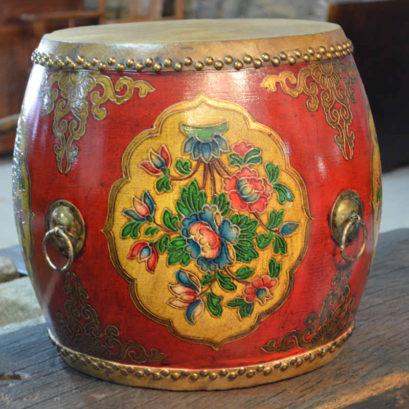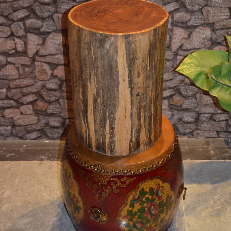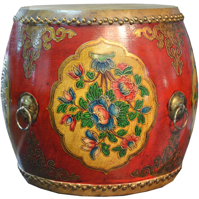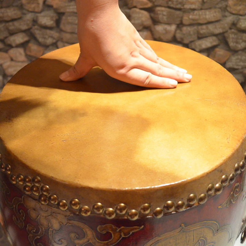 Solid wood genuine leather furniture drum stool-changing stool drum mound embroidery mound leather drum chair solid wood round drum stool imitation ancient drum