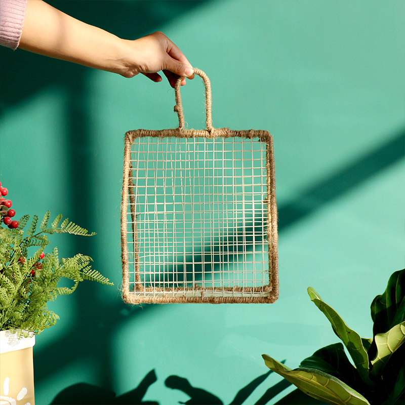 Creative Hand Wall-mounted Iron Art Illustrator Basket Floral Bouquet Simulation Flowers Fake Floral Floral Tabletop Pendulum to decorate hemp rope