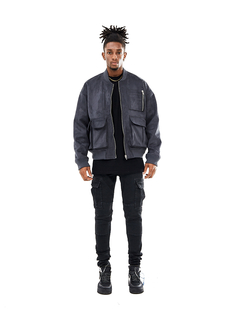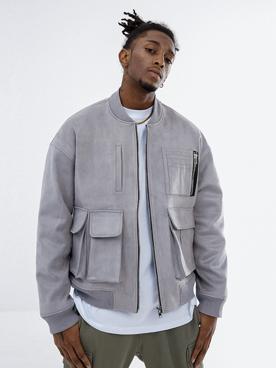 BONELESS Suede Jacket Multi-Pocket Cargo Jacket Jacket Thick Leather Fall/Winter Baseball Cotton Jacket For Men