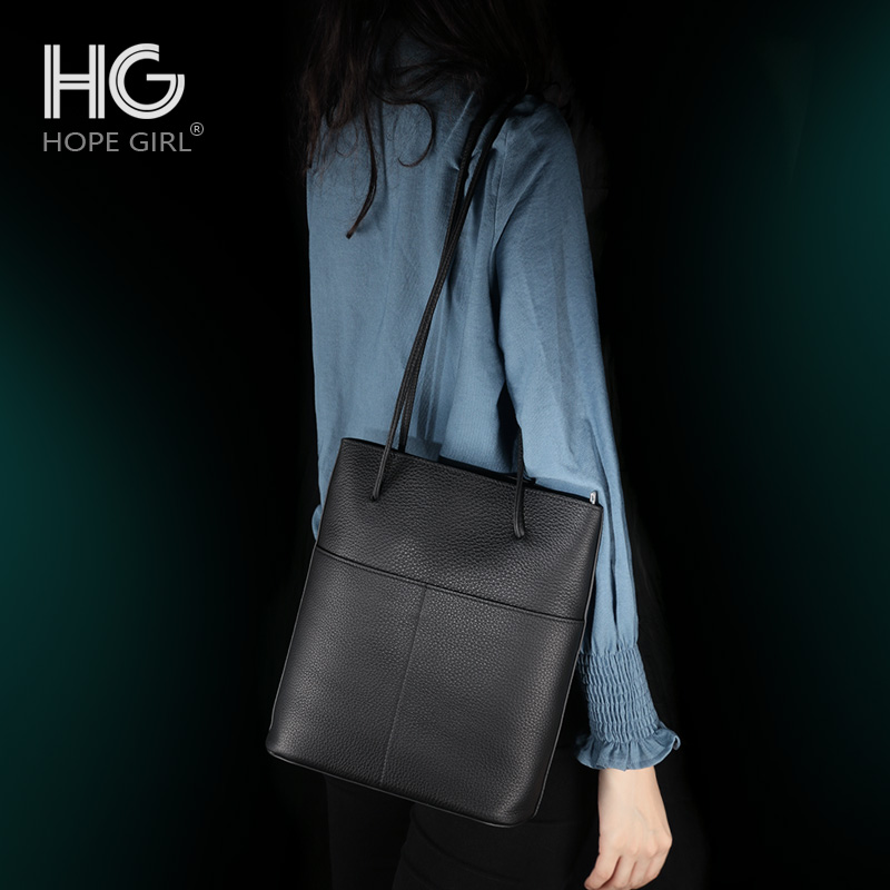 Hope girl bucket bag female leather underarm large capacity pure niche design cowhide slung new multi-compartment