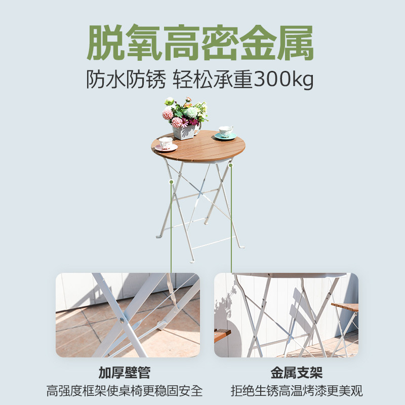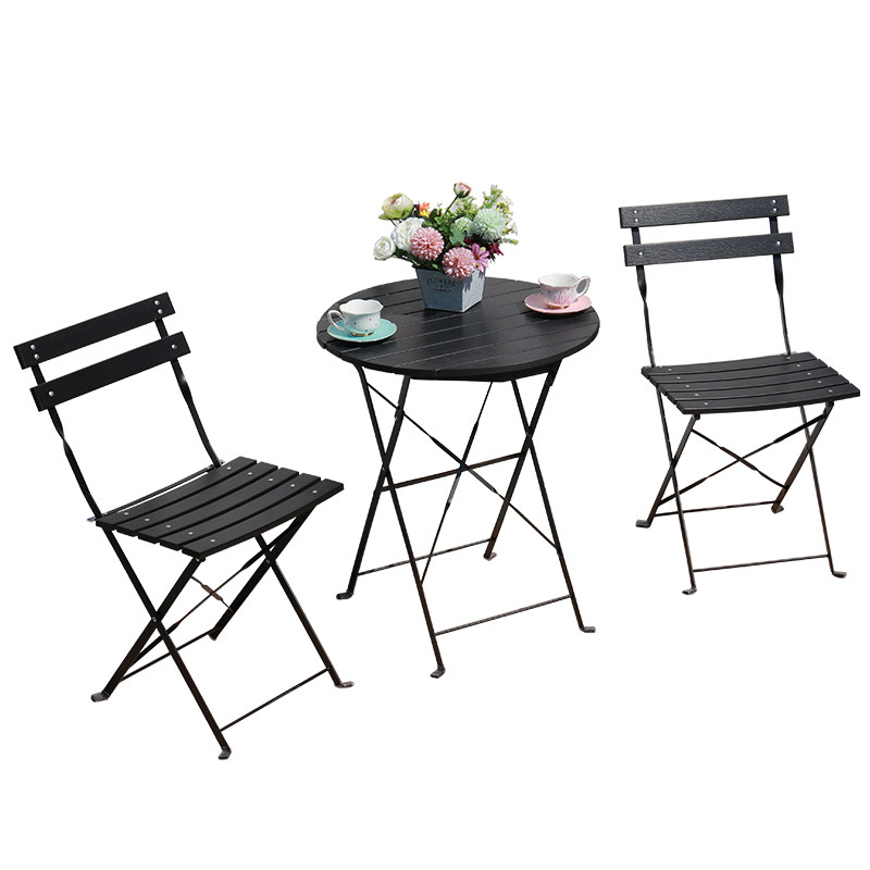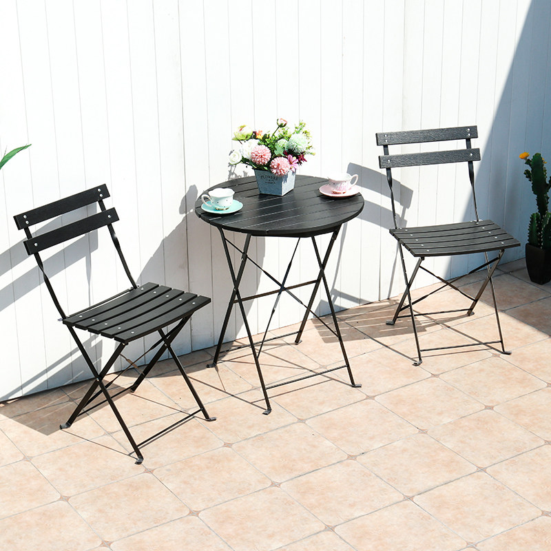 Outdoor folding plastic wood table and chairs outdoor terrace balcony Leisure small table and chairs Three sets of iron art anti-rust portable-Taobao