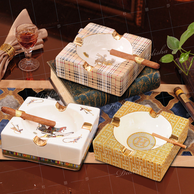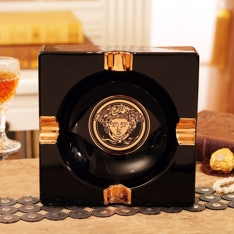 European-style black ceramic ashtray home ktv decoration coffee table oversized fashion bar cigar high-end simple