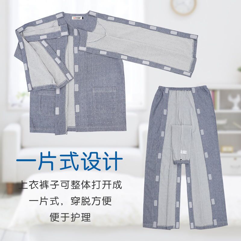 Spring and summer cotton yarn adult paralyzed bedridden patients physiotherapy chemotherapy easy to put on and take off sick clothes after fracture care clothes