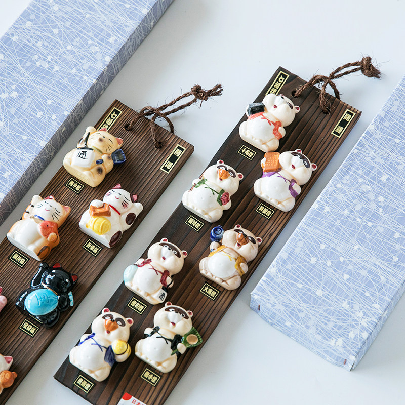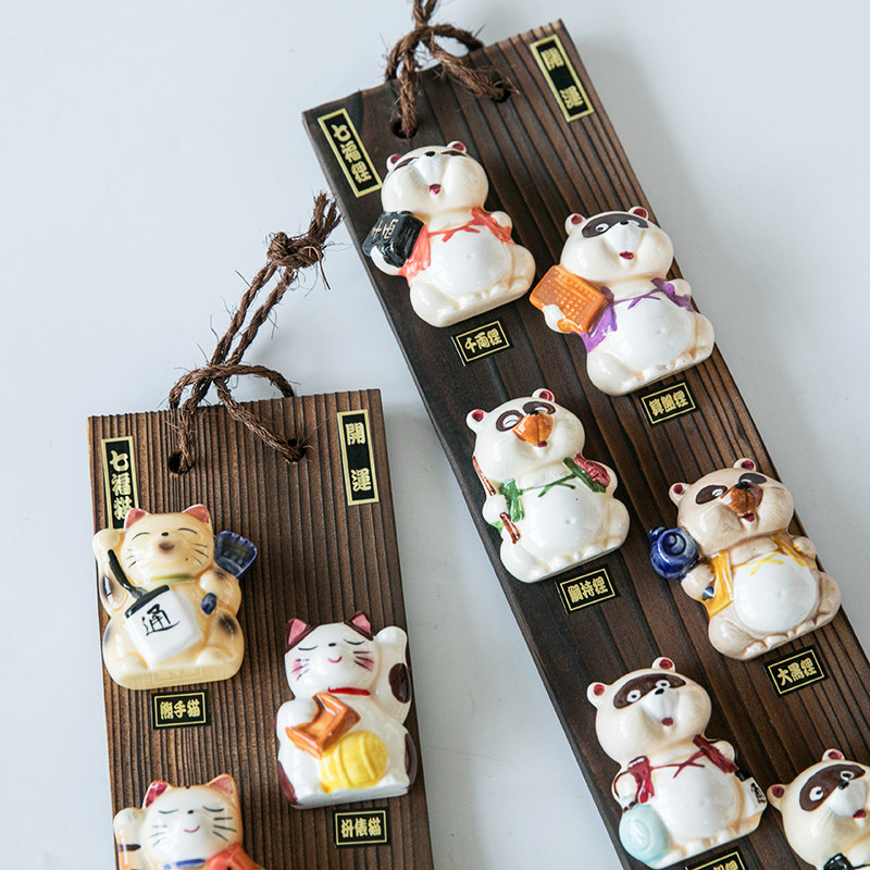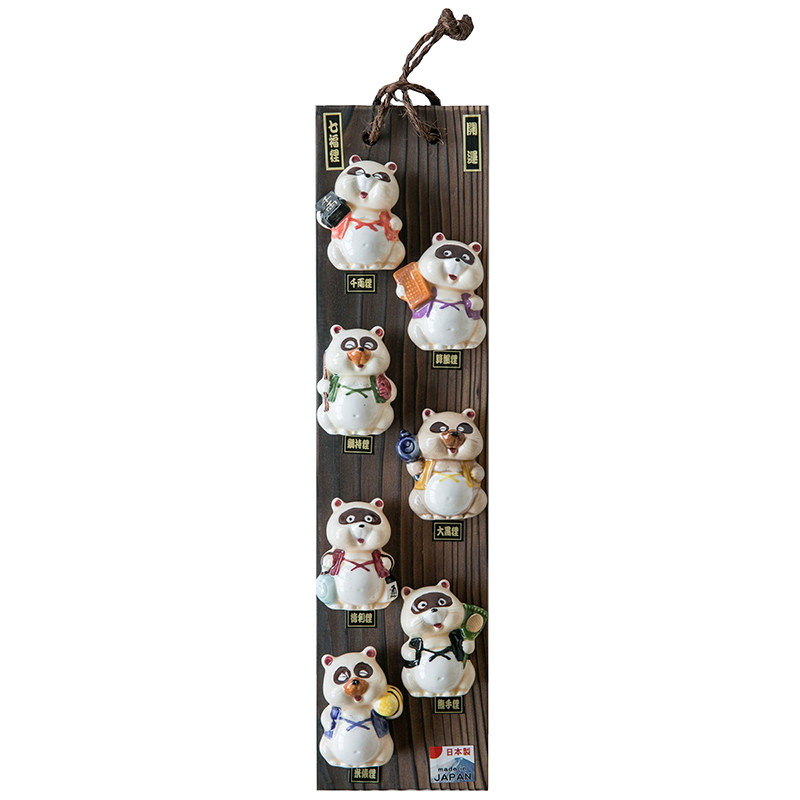 Japanese-made hand-painted ceramic seven lucky raccoon beckoning cat living room porch wall hanging business prosperity and good luck decoration gift