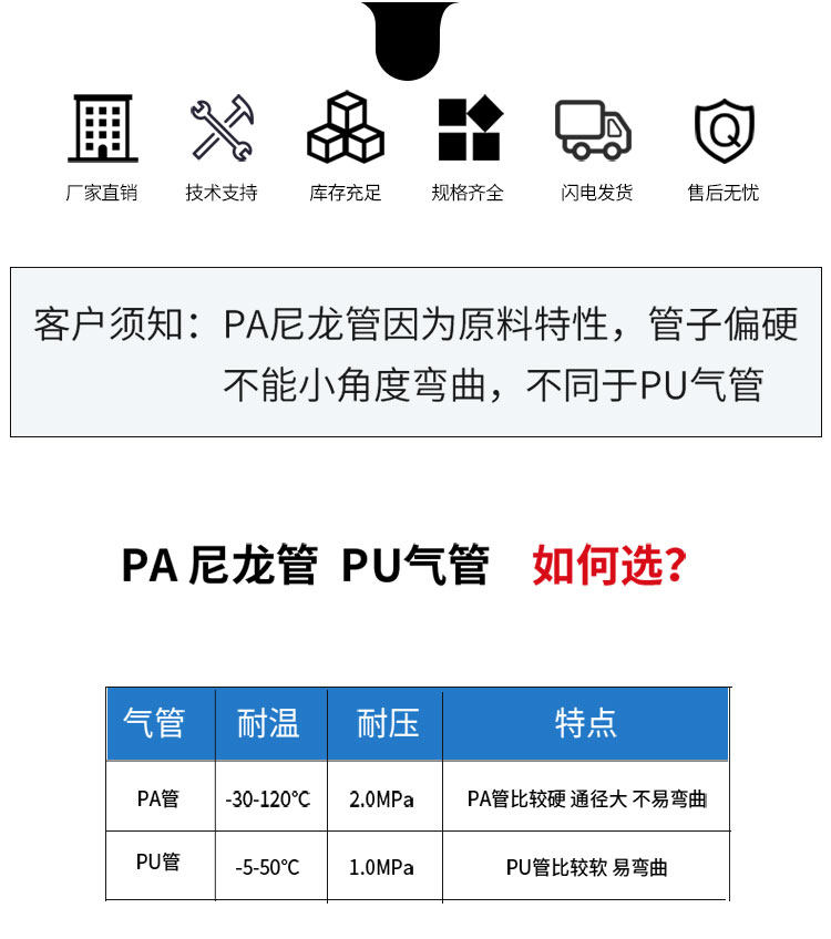 Sub-large tube NYLON Sub-large nylon trachea 6*4 8*6*10*8 high pressure pipe lubrication pipe PA11 material
