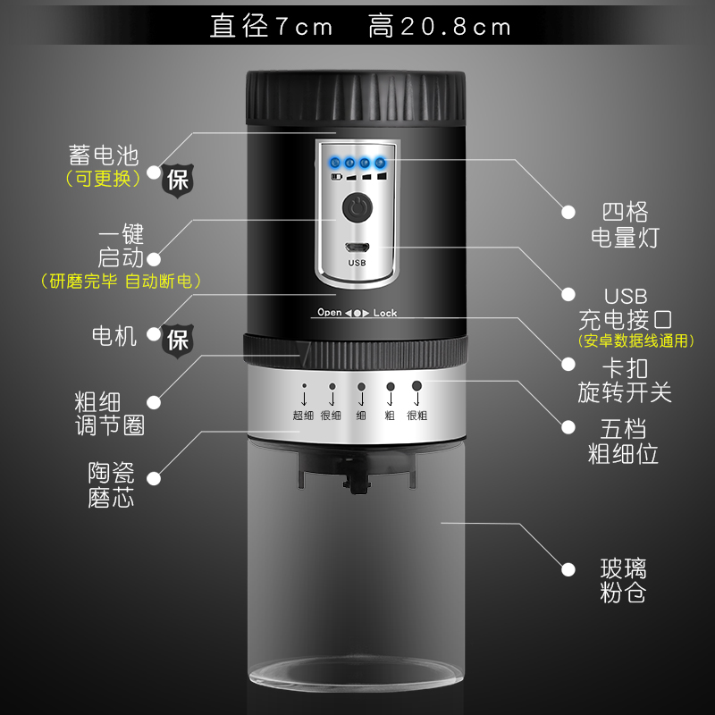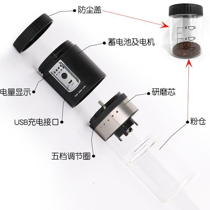 Coffee bean grinder USB charging electric on-board portable dry grinding powder hand grinding coffee machine for home small grinding machine