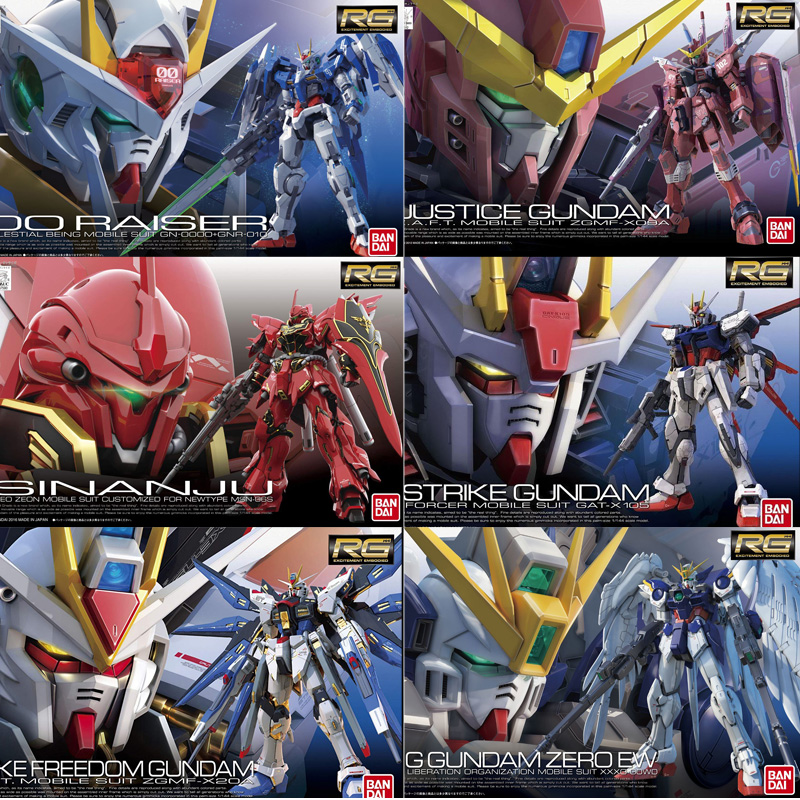 RG03-Air Combat Assault Gundam RG04-Mass Production Green Zhagu RG05-Freedom Gundam RG06-Air Overlord Sword Gundam RG09-Justice Gundam RG11-Fate High