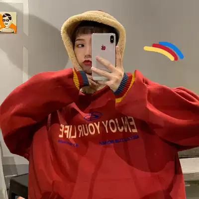 waitmore women loose Korean version of ins Super fire cec Harajuku bf lazy wind plus velvet padded harbor style jacket