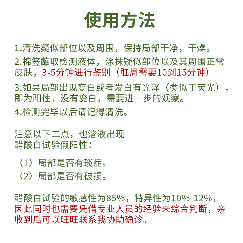 Wet Pont Flat Wart Pearl Grain Detection Liquid Acetate White Detection Liquid Spray Hpv Detection Self Test