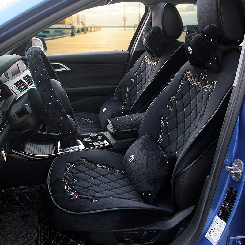 New original embroidered plush car cushion female winter general warm and cute fashion embroidery all-pack seat suit