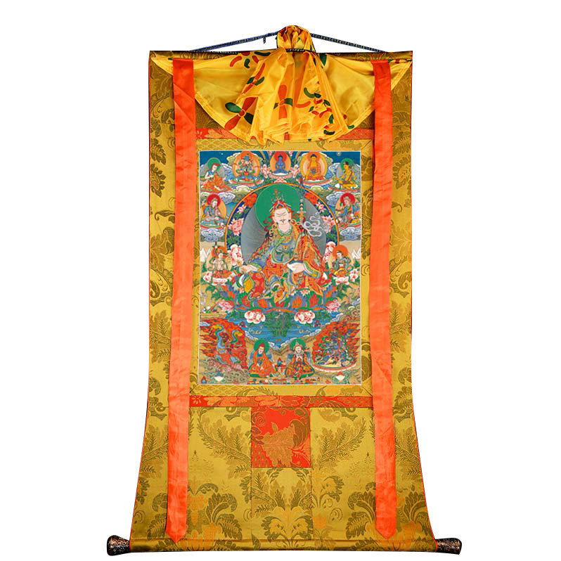 Tangka Hung Painting Tibetan Biography Handmade Framed Mineral Raw Material Decoration Painting Lotus Division Octavaria
