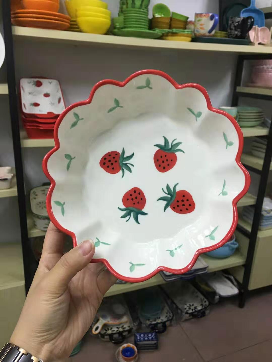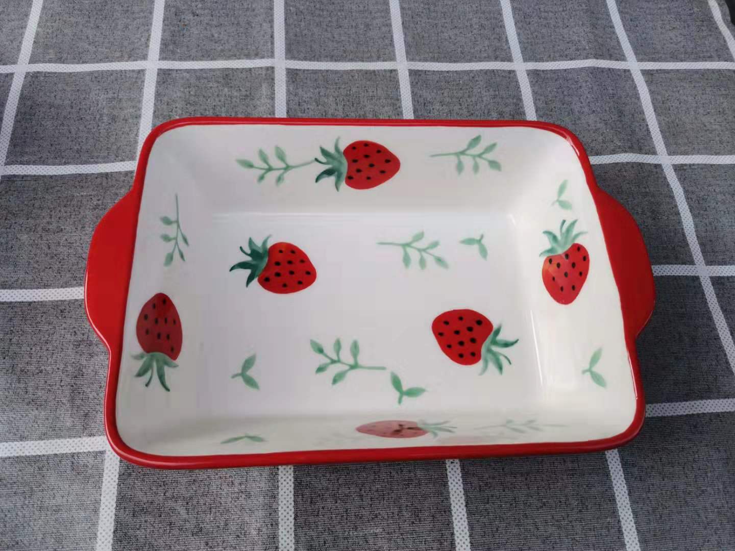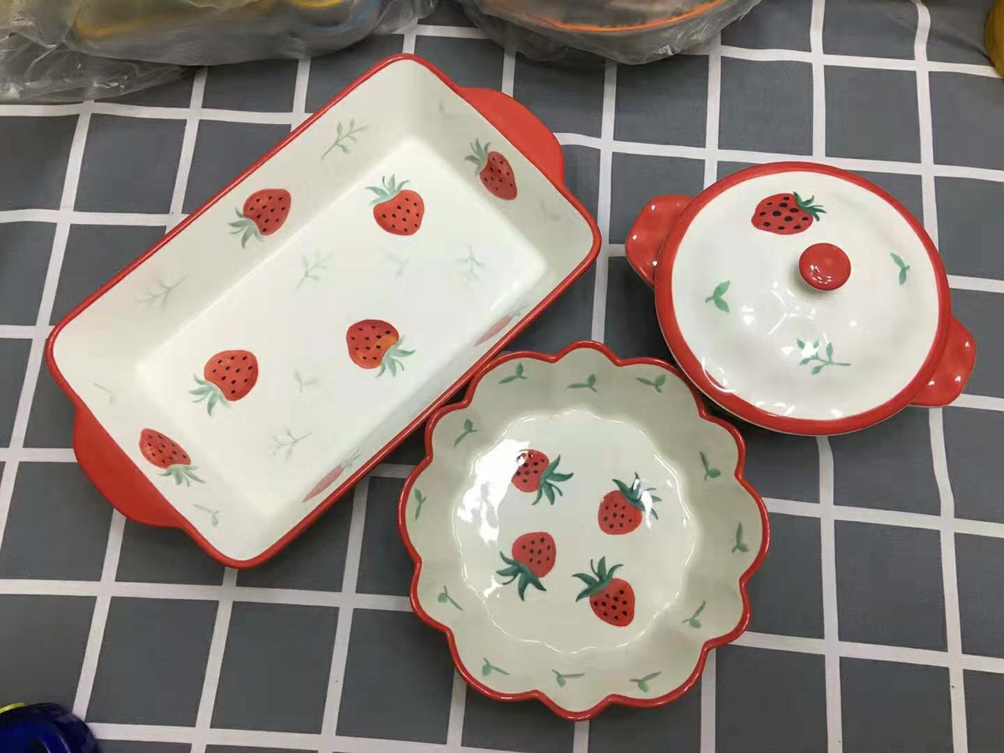 Red Strawberry Fish-Shaped Plate (24 5*12 7*5) Red Strawberry Rectangular Baking Plate (23*15*5) Red Strawberry Baking Bowl (18*12 5*6) Red Strawberry Bowl (