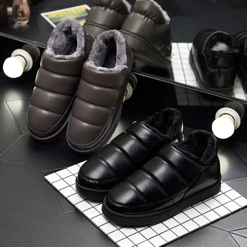 Cotton slippers men's bag heel winter home Warmth Plus Suede PU Leather Indoor outside wearing waterproof anti-slip cotton shoes male
