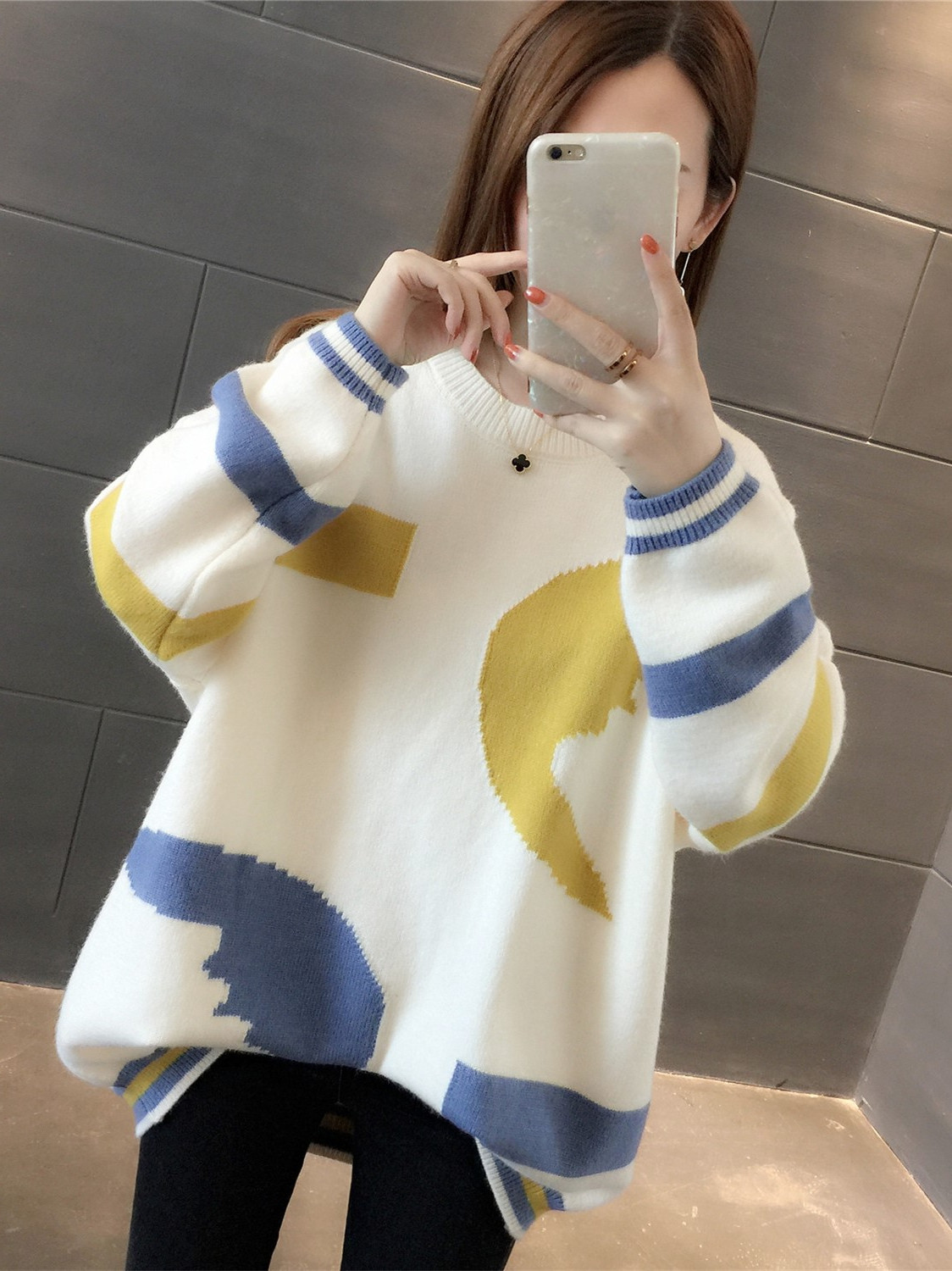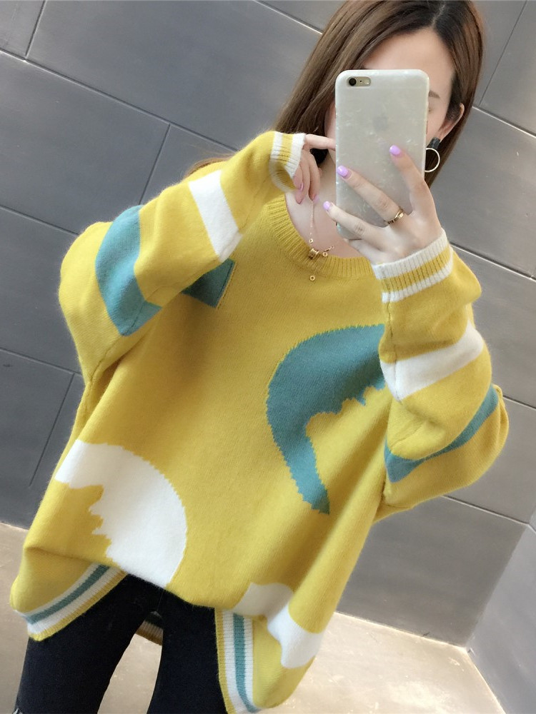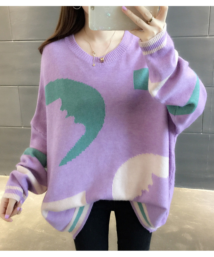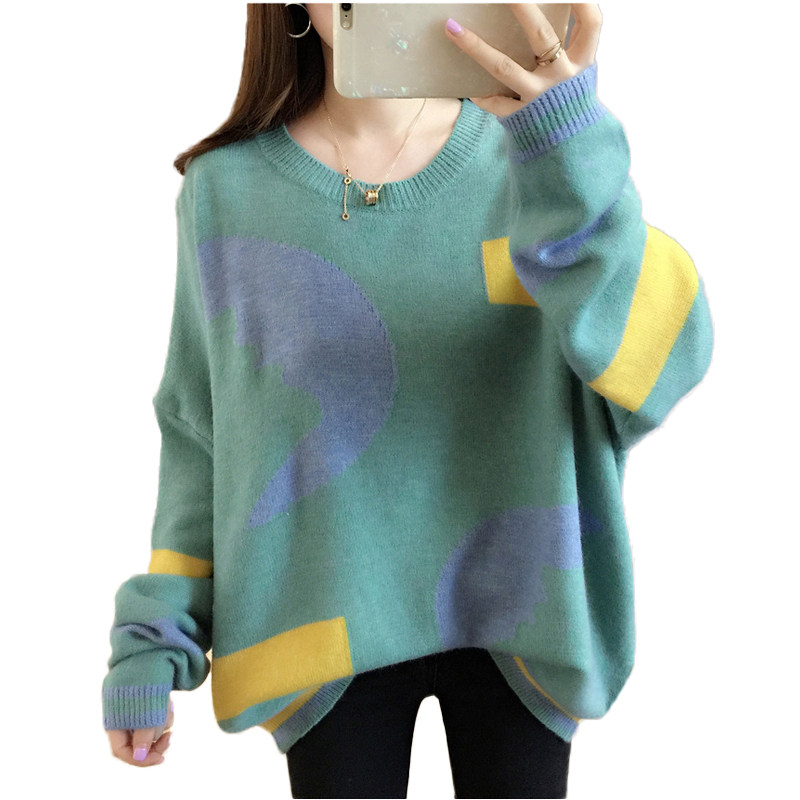 2020 Autumn Winter New Loose Outside Wearing Korean version Knit Round Collar Short sleeve Head sweater Lazy Craze