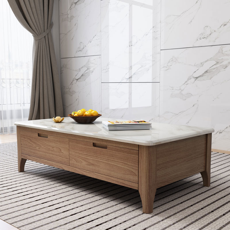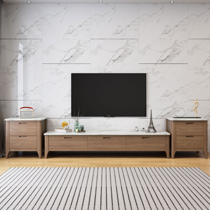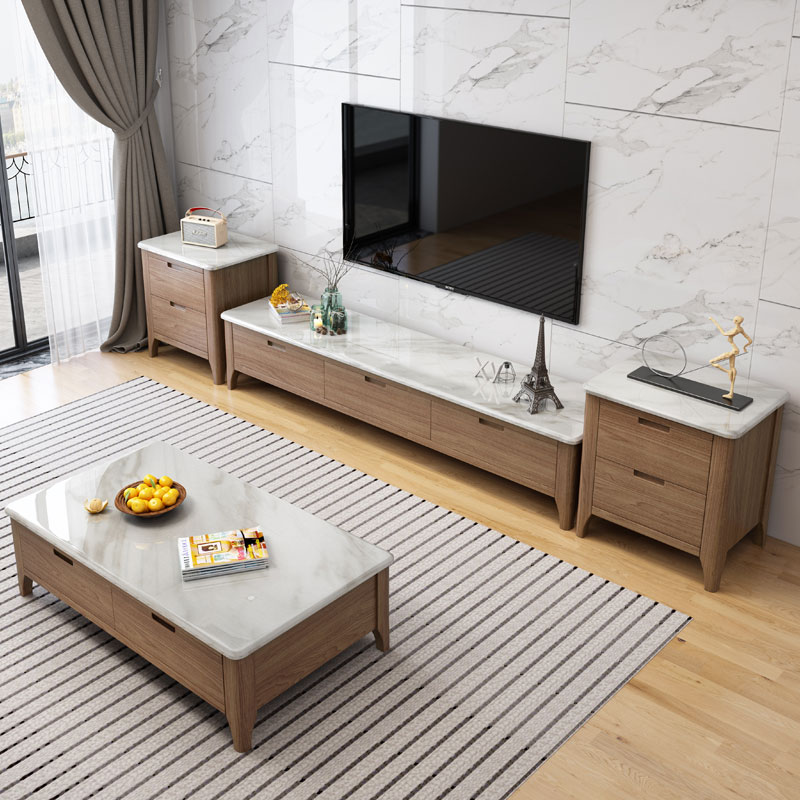 Solid wood marble tea table TV cabinet combination Nordic small apartment modern simple living room fire stone furniture set