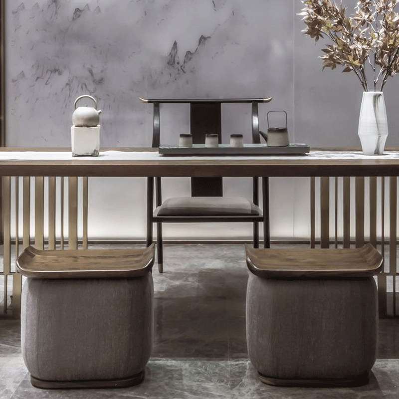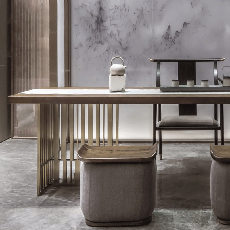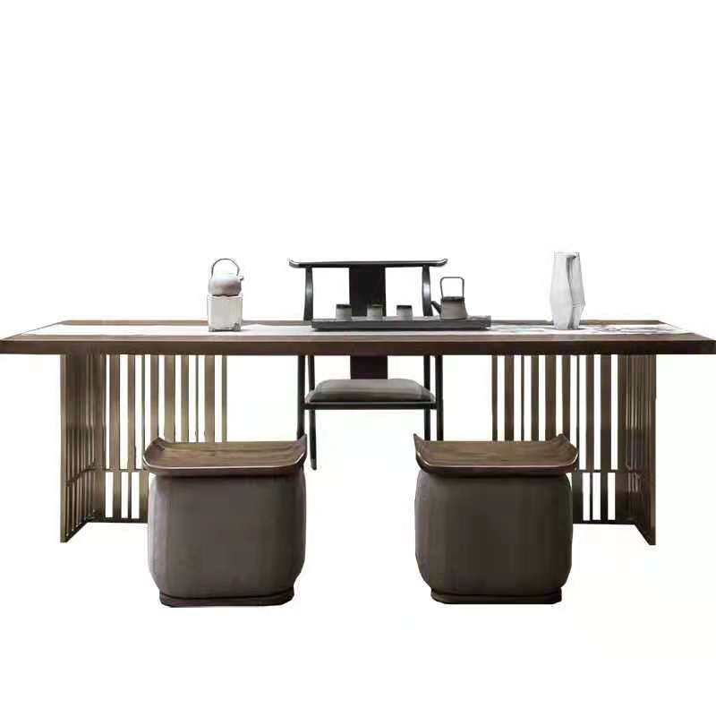 Italian light luxury stainless steel tea table and chair combination new Chinese tea table Zen solid wood desk model room furniture customization