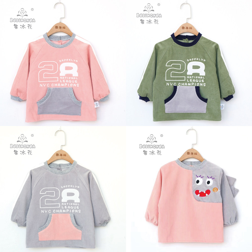 Autumn and winter children's gown corduroy waterproof girl's anti-dressing baby cotton baby long-sleeved baby eating clothes
