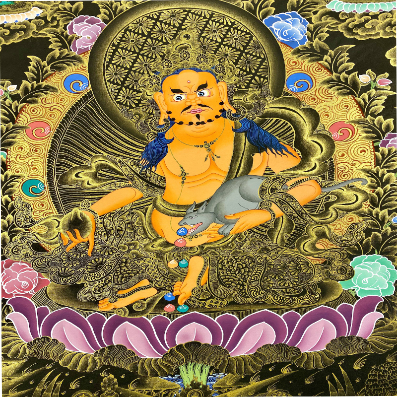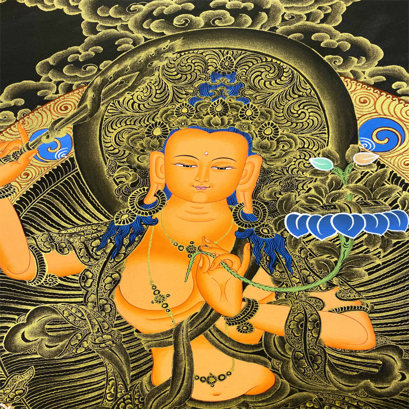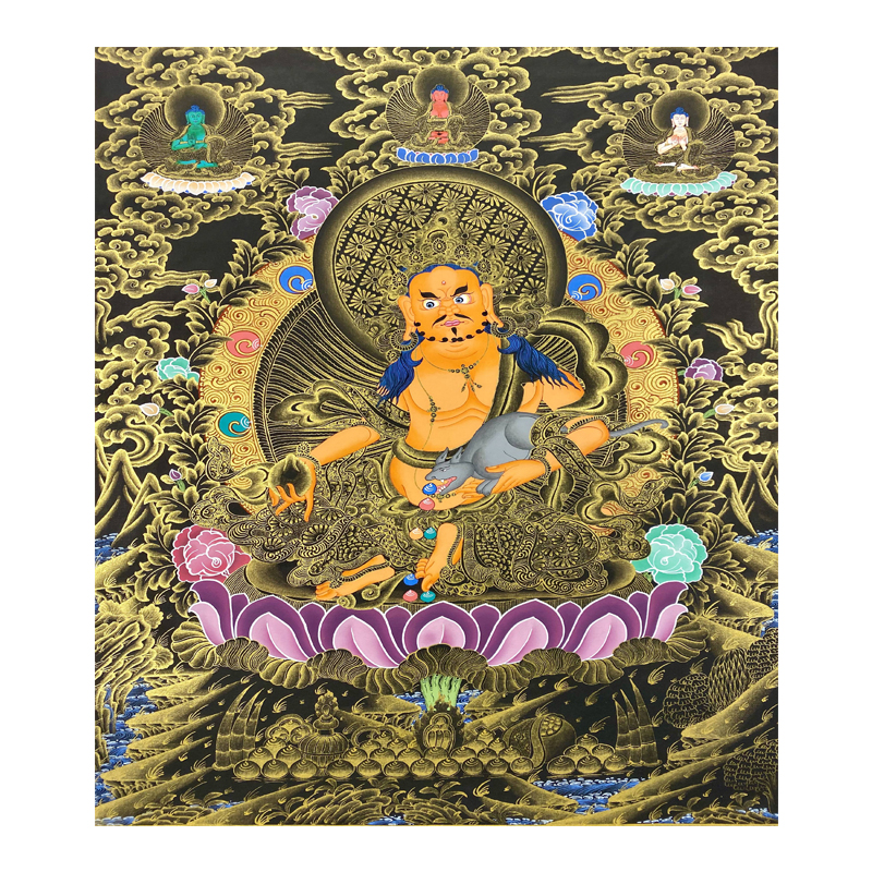 Black Gold Yellow Treasure God Avenjustva Pure Hand Painted Pure Handmade Nepal Tibet Tangka Hung Painting Genguan Decorative Painting