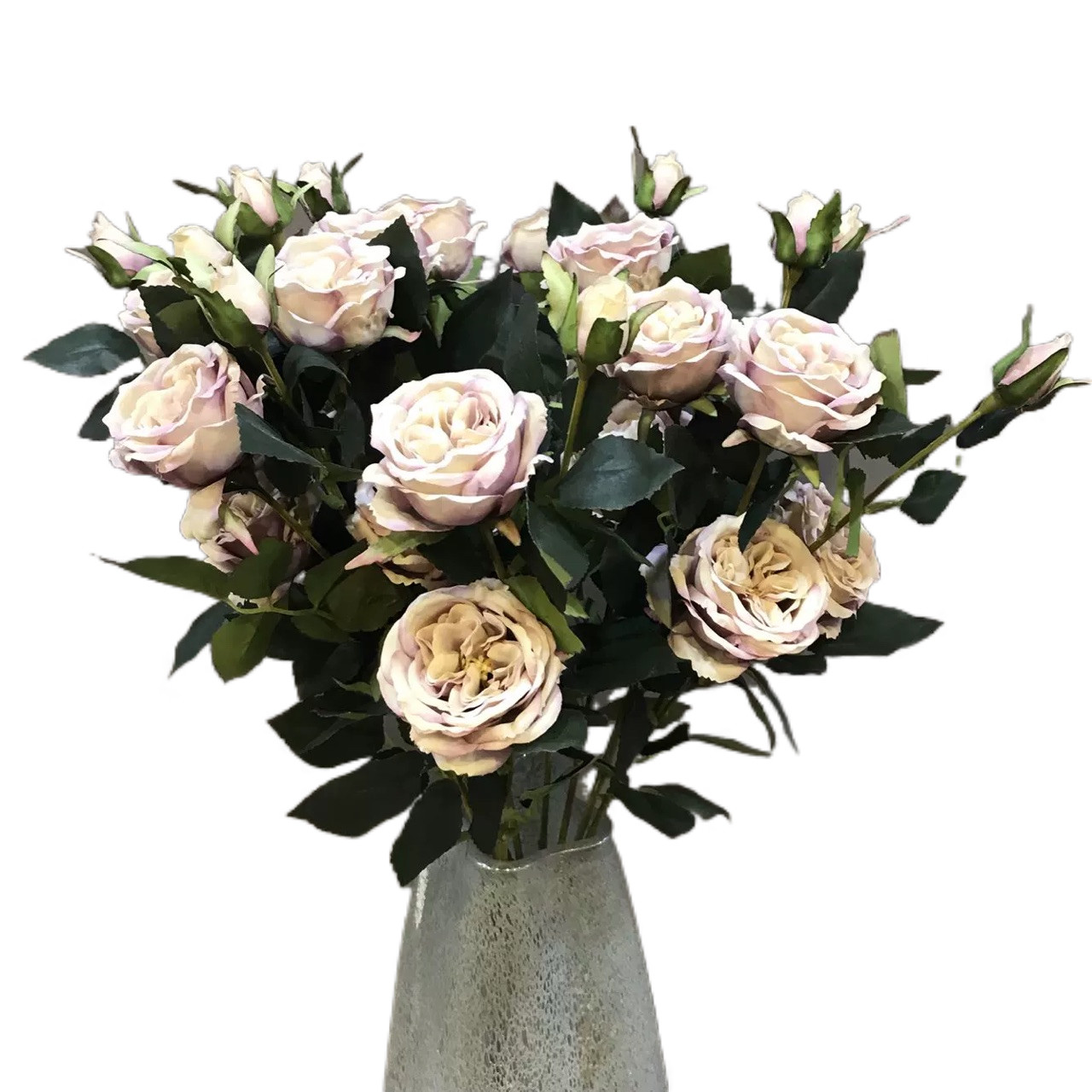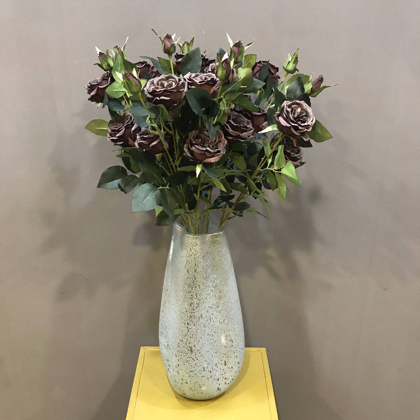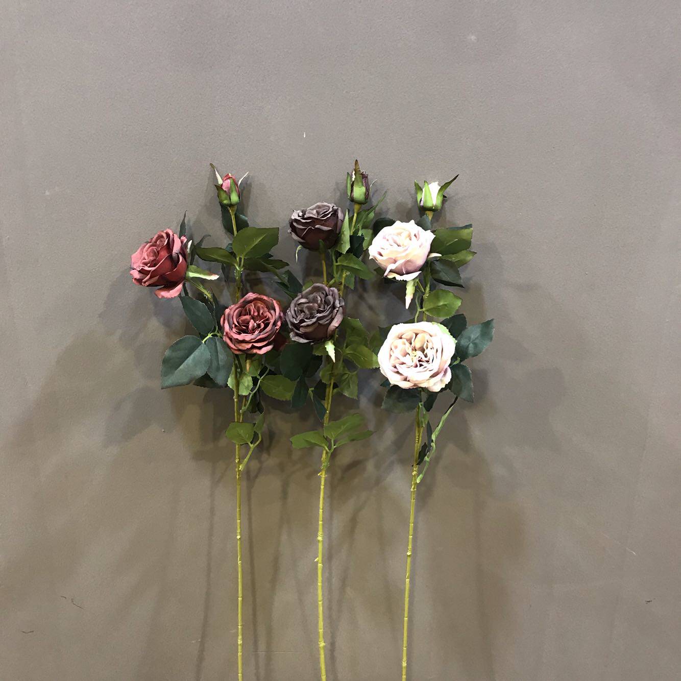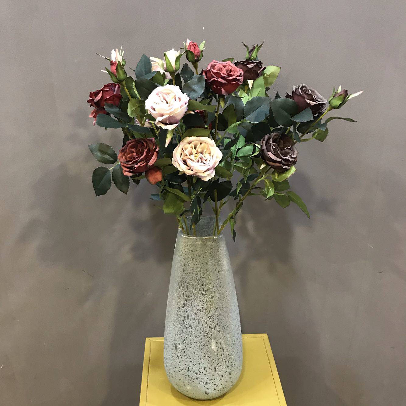 Simulation flower fake flower silk flower European-style American oil painting style single three-head Austin rose living room bedroom board room
