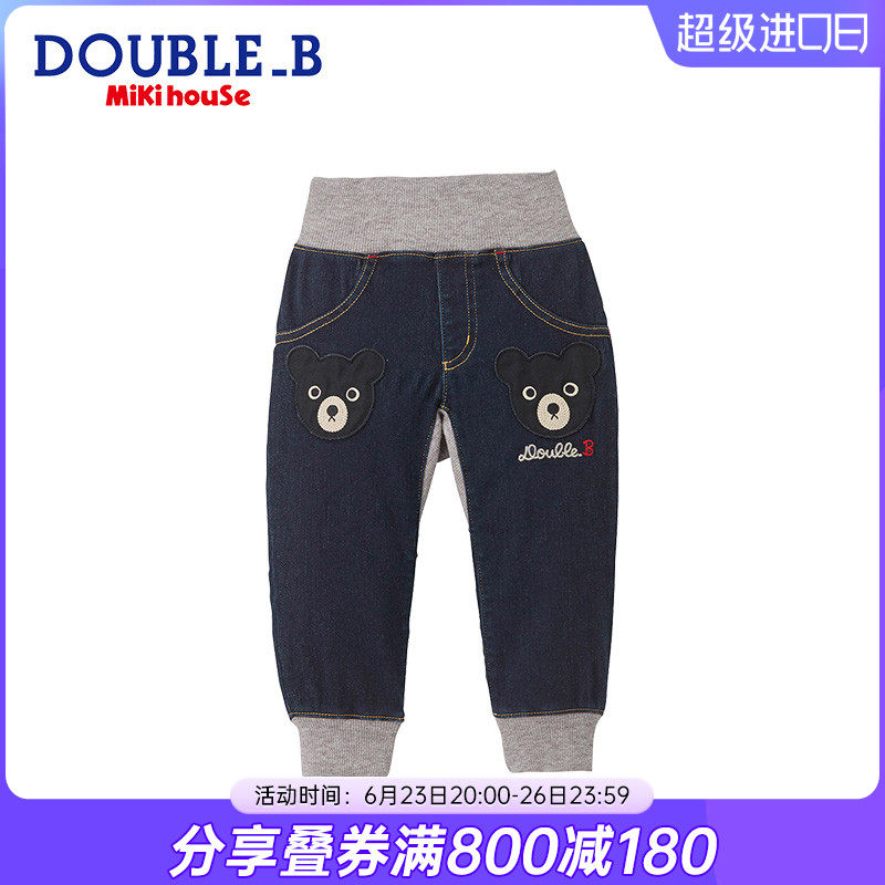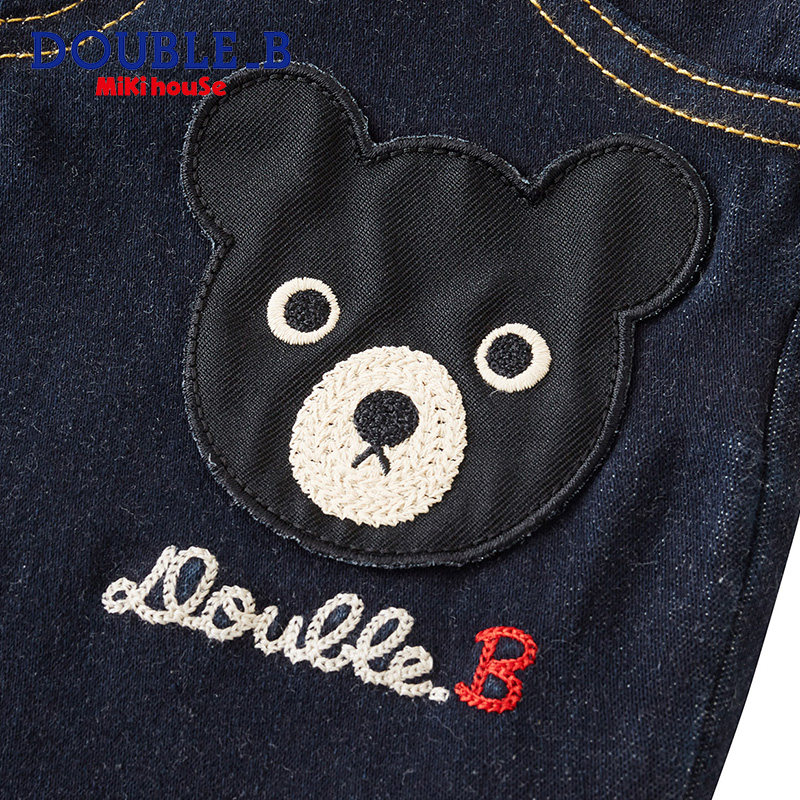 Child jeans crotch pants Mikihouse Double_B small black bear elastic denim hip crotch pants set goods