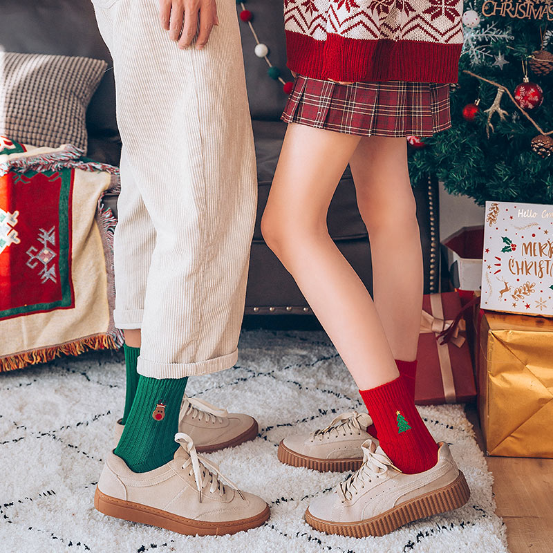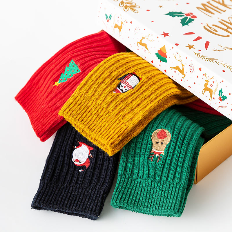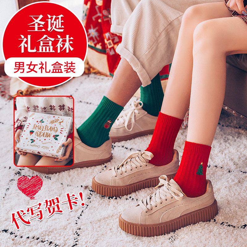 Mountain House Notes Christmas Socks Gift Box Creative Cotton Socks Send Girlfriend Gifts Couples Christmas Style Spring and Autumn Mid-Tube Socks