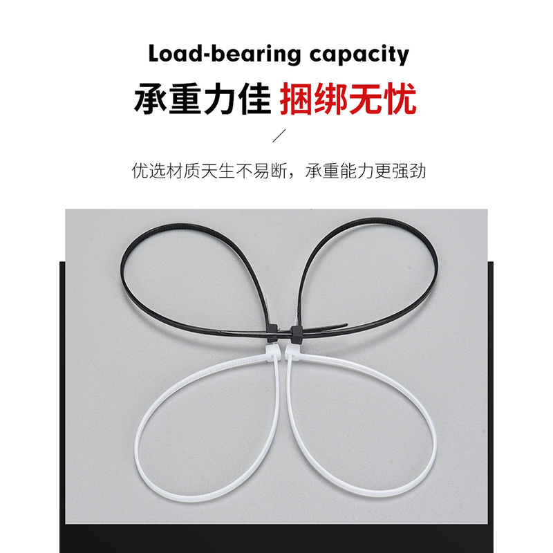 Self-locking nylon cable ties 4x200 fixed plastic black and white cable ties 3X200 buckle bundles strong cable ties
