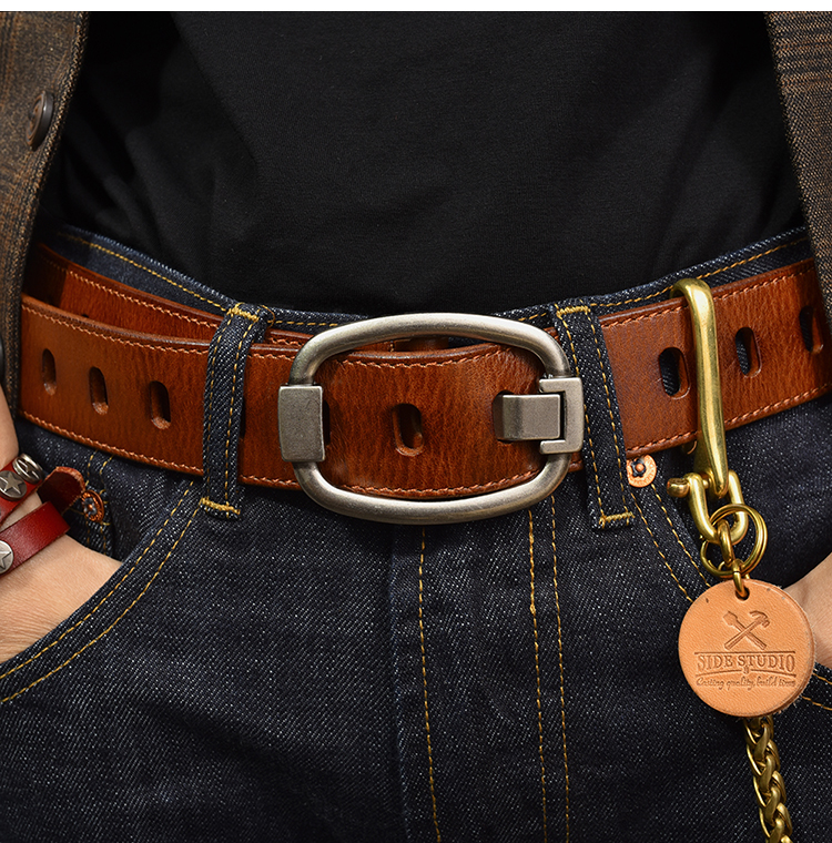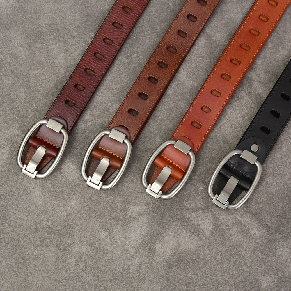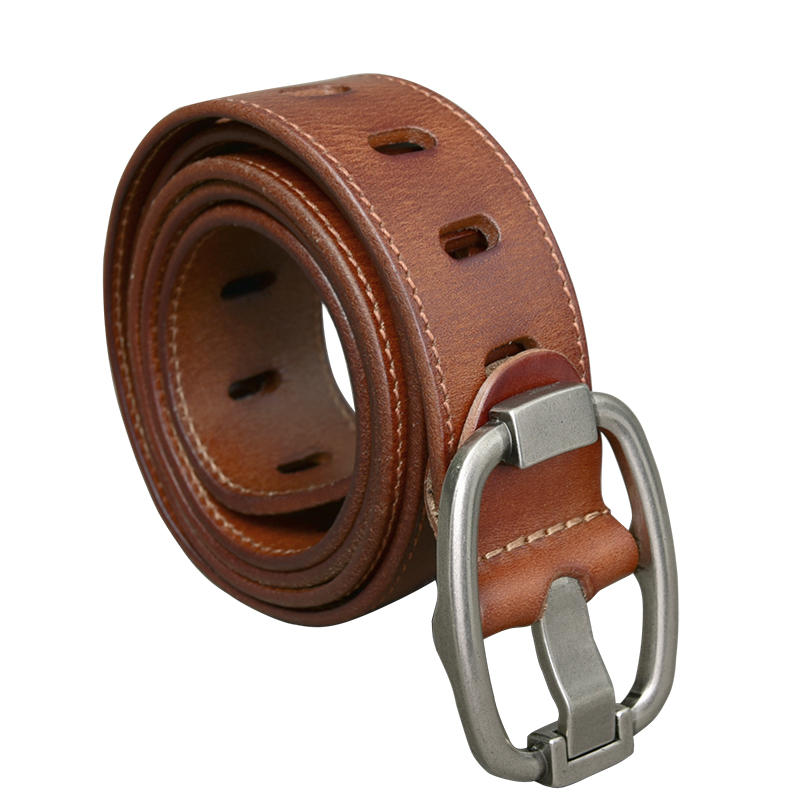 Twenty-fourth street porous belt men's leather pin buckle head layer leather youth belt middle-aged jeans belt tide