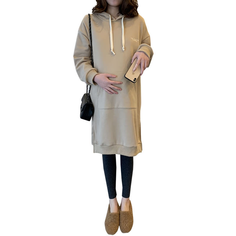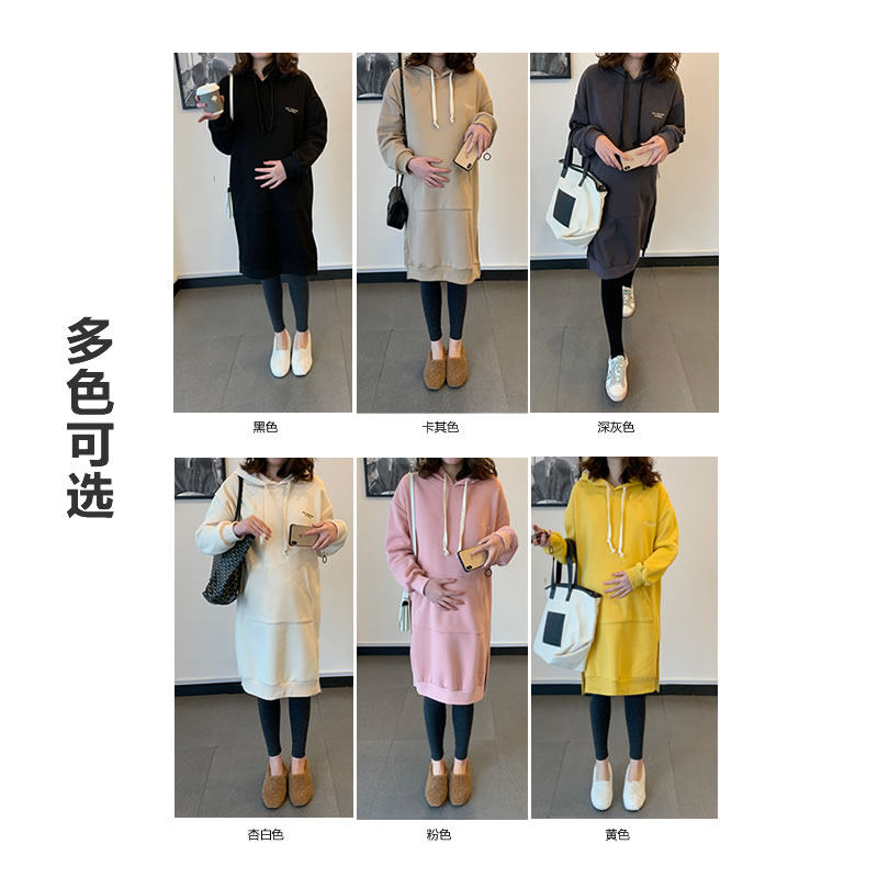 Maternity wear autumn and winter maternity sweater dress long version over the knee winter plus velvet thick fashion Korean loose top