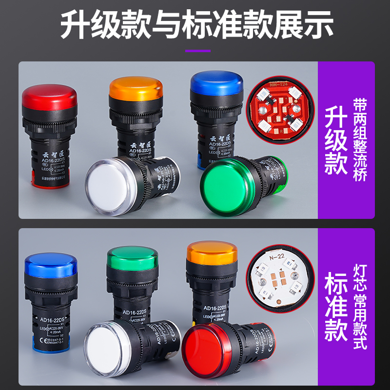 (Upgrade Highlight) Red-AC AC220V (Upgrade Highlight) Green-AC AC220V (Upgrade Highlight)Red-AC220V-380V (Upgraded Highlighter)Green-AC220V-380V (Upgraded Highlighter)Yellow-AC220V-380V (Upgraded Highlighter)Blue-AC220V-380V (Upgraded Highlighter)White-AC220V-380V (Upgraded Highlighter)Red 12-48V Universal (Upgraded Highlighter) Green 12-48V Universal (Upgrade Highlight) Yellow-12-48V Universal (Upgrade Highlight) Blue 12-48V Universal (Upgrade Highlight) White 12-48V Universal (Normal) Red -AC220V-380V (Normal) Green -AC220V-380V (Normal) Yellow-AC220V-380V (Normal) Blue -AC220V-380V (Normal) White -AC220V-380V (Normal) Red 12-48V Universal (Normal) Green 12-48V General Purpose (Normal) Yellow 12-48V General Purpose (Normal) Blue 12-48V Universal (Normal) White 12-48V Universal Anti-Interference Indicator Red (220-380V) Anti-Interference Indicator Green (220-380V)
