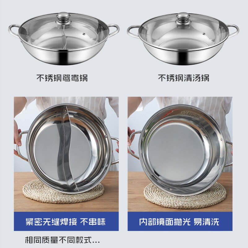 Mandarin skillet hot pot Hot Pot stove with thickened Home Stainless Steel Clear Soup Pot primary and secondary insulation boiler Barrier Alcohol Stove