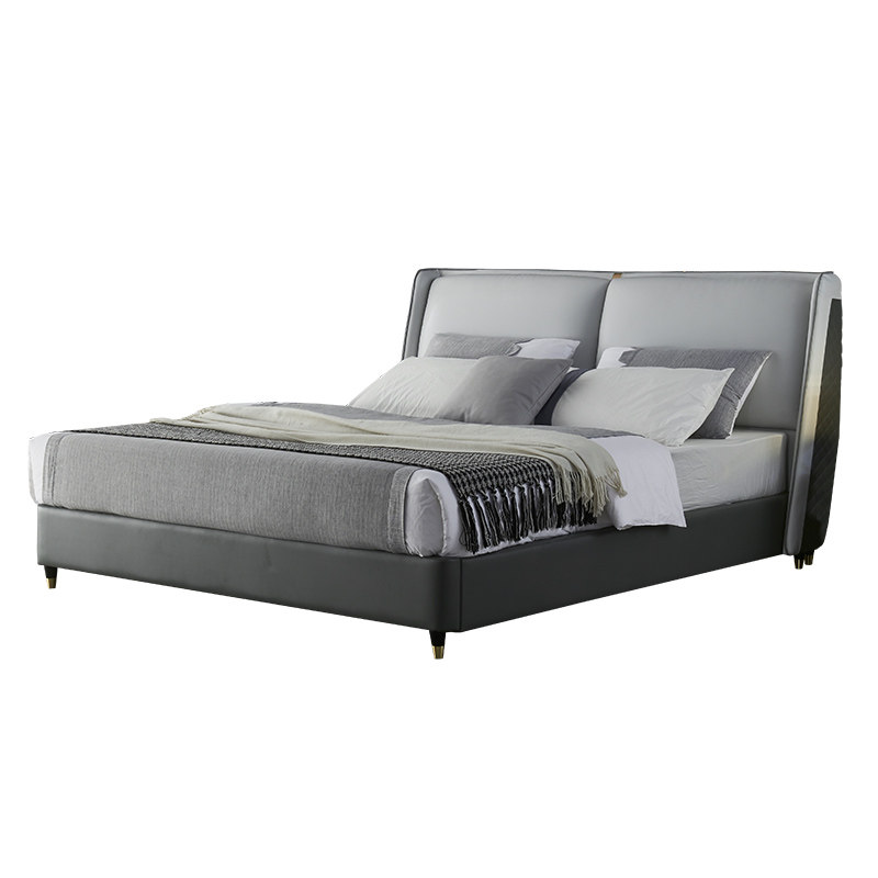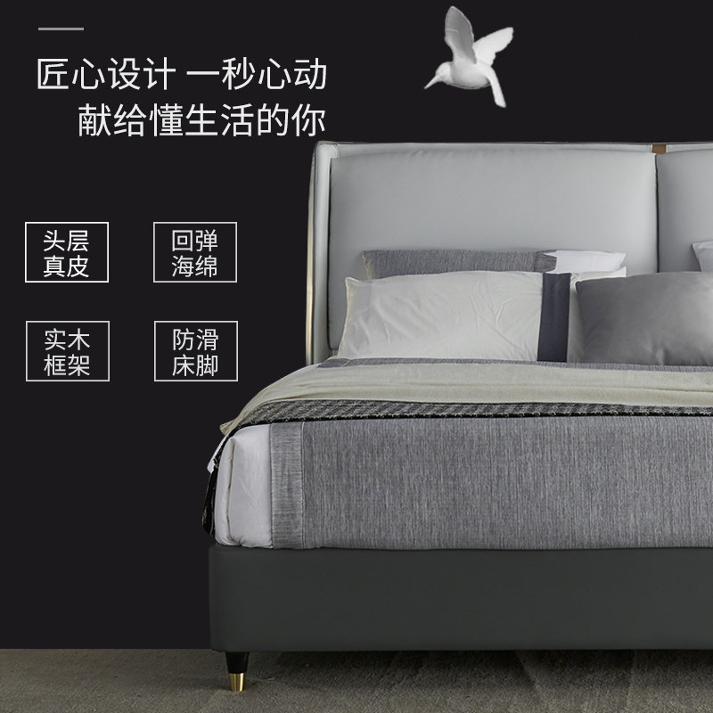 Nordic Italian light leather bed double bed 1 8 meters 1 5 modern minimalist master bedroom atmosphere small apartment luxury bed leather bed