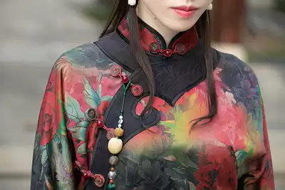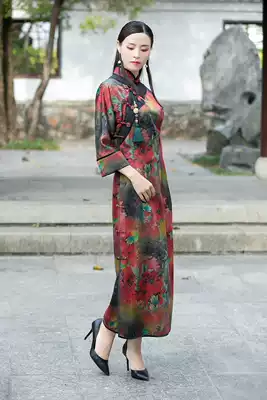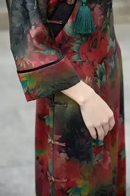 Xi Hanyue {Man Gong Flower} Heavy Forged Fragrant Cloud Yarn Cheongsam Female Long Edition Premium Vintage Heavy Industry Autumn 2021 New