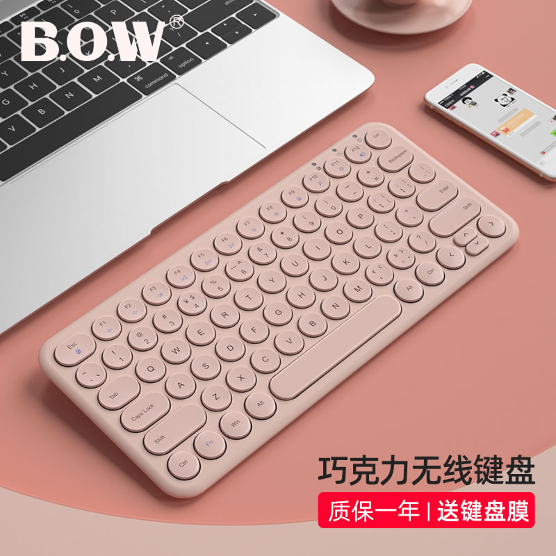 BOW Hangshi notebook wireless keyboard computer desktop with usb external chocolate office dedicated typing pink girl cute small mouse set ultra-thin portable mini mute sound