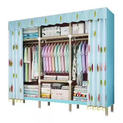 Simple cloth wardrobe fabric assembly storage wardrobe steel pipe thick reinforcement full steel frame rental room with Oxford cloth hanging