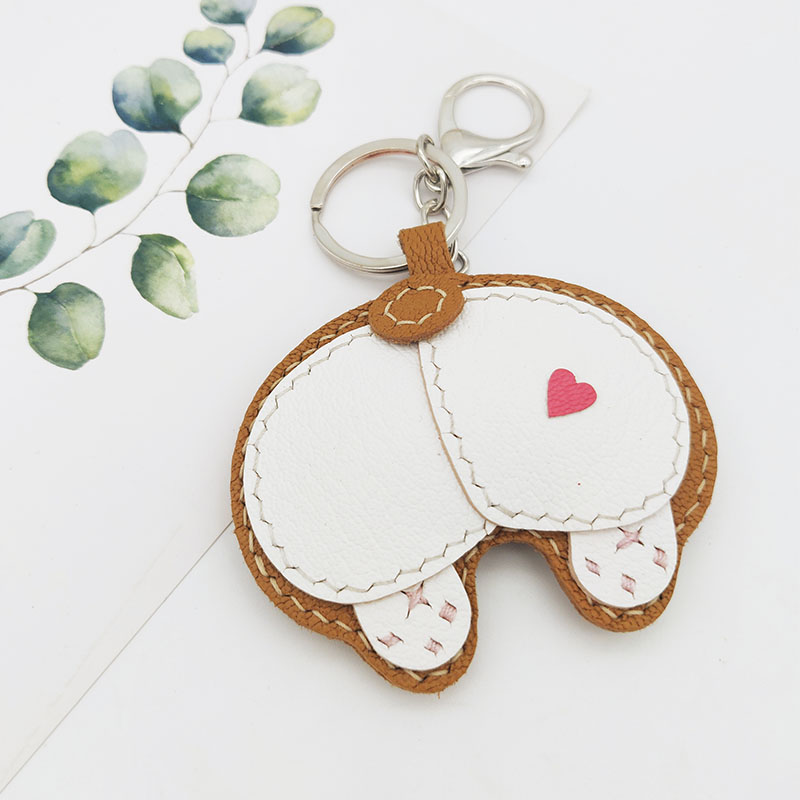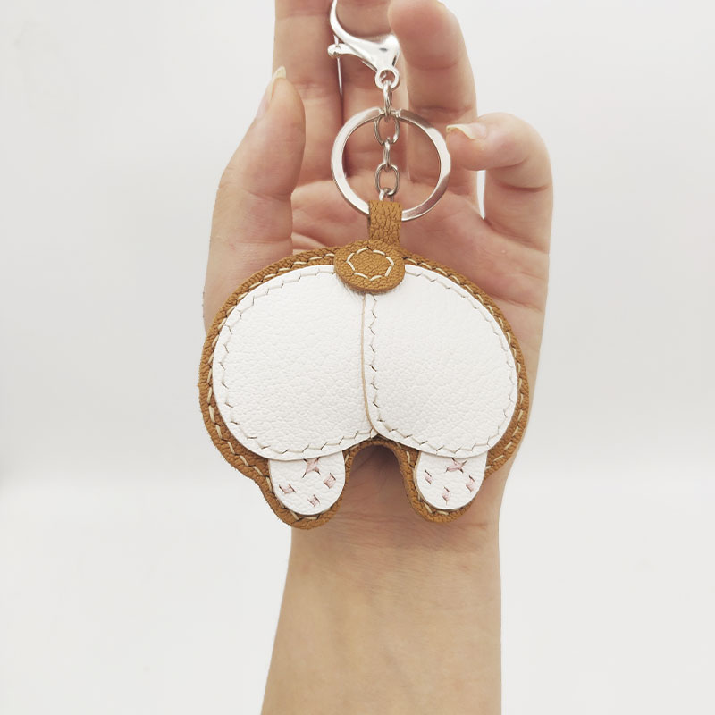 Xiaomei hand-made free lettering cute corgi ass keychain access card set sheepskin diy cut hole material bag