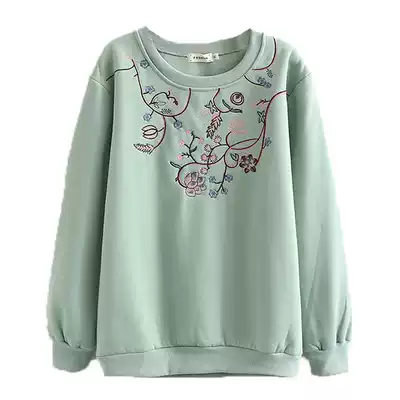 Middle-aged autumn and winter clothing plus velvet pullover fashion mother clothing embroidery loose casual middle-aged and elderly sweater jacket spring