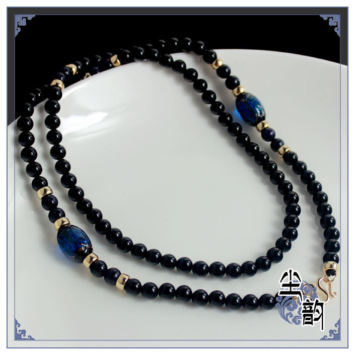 Original high-end 14K gold Buddha brand chain Thailand natural black onyx necklace men and women hanging chain does not fade